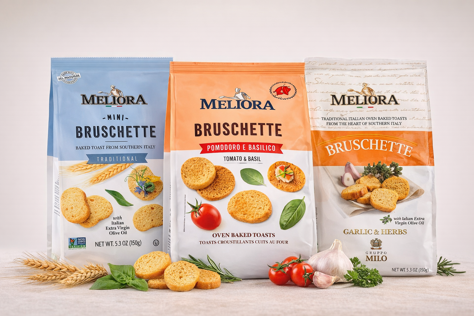 Crujientes tostadas horneadas con aceite de oliva extra virgen y sabores auténticos del sur de Italia.